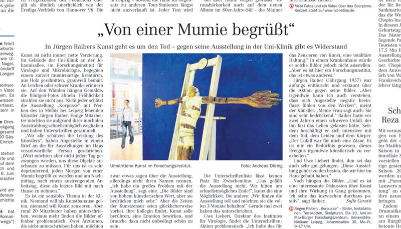 Een van de artikelen die ik schreef als gastredacteur van de Leipziger Volkszeitung, over een tentoonstelling in een universiteitskliniek waartegen door het personeel een handtekeningenactie was gestart. Het zou té deprimerende en morbide kunst zijn om bij te werken.
